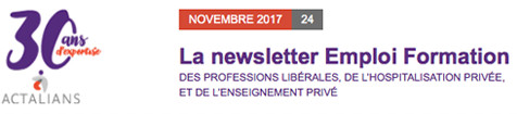 A la Une . Les thèmes et barèmes de prise en charge 2018 Actualités . Déclaration 2018 : une procédure dématérialisée… à anticiper ! . Professionnels de santé : rendez-vous en ligne pour tout savoir du DPC . Vos prestataires de formation sont-ils référencés auprès d’ACTALIANS ? Pour lire l'intégralité de la newsletter ACTALIANS du mois de novembre : cliquez-ici 30/11/2017